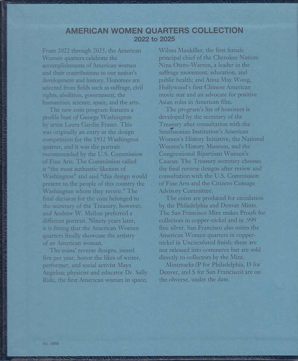 - 🔒 BINDER: The American Women Quarters Album 2022–2025 P, D & S Mints is sturdy, soil-resistant, and features Whitman’s signature grained leatherette cover in classic blue